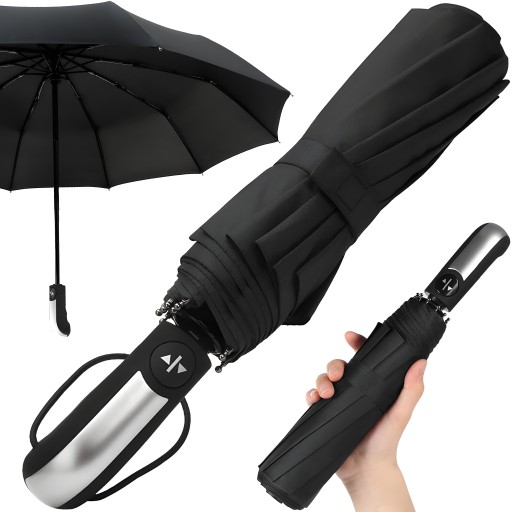 SOLIDNY PARASOL PARASOLKA SKŁADANA AUTOMAT UNISEX 10 DRUTÓW + POKROWIEC