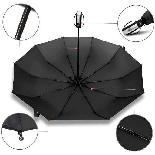 Parasolka posiada 10 ramion, charakteryzuje się dużym rozmiarem, co zapewnia znakomitą ochronę przed deszczem i słońcem.