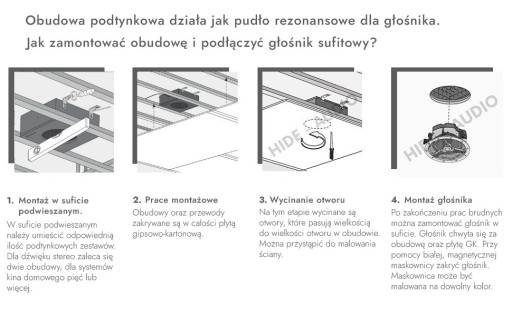 Zastosowanie obudowy podtynkowej do głośników instalacyjnych umożliwia uzyskanie najlepszych efektów dźwiękowych , szczególnie w obszarze niskiej średnicy i czystego basu . Zapewnienie odpowiednio dużej i wygłuszonej obudowy jest kluczowym elementem dobrego brzmienia.