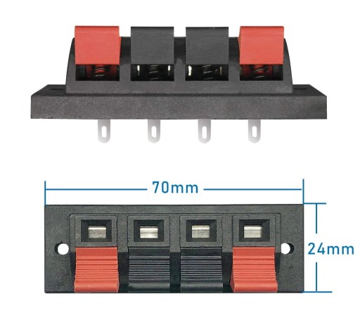 To rodzaj wtyków często spotykanych w starszych lub budżetowych systemach. Terminal głośnikowy na szpilki działa z pomocą sprężynek.