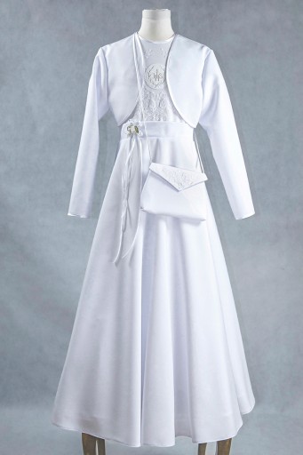 ALBA SUKIENKA KOMUNIJNA Z BOLERKIEM SZYTA NA MIARĘ Materiał dominujący poliester