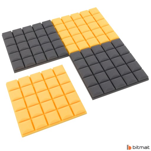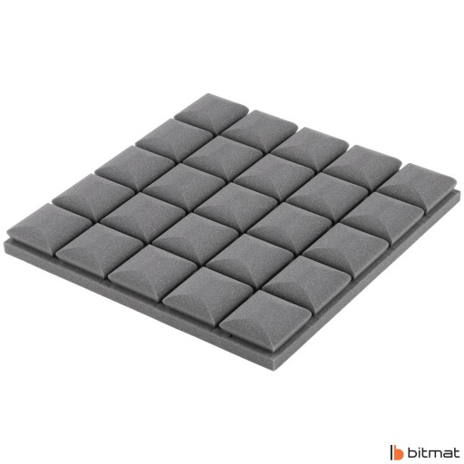 Pianka akustyczna kostka profilowana marki Bitmat zwana także panelem akustycznym jest wykonywana ze spienionego poliuretanu, a jego struktura to otwarte komórki. Zastosowanie odpowiednich stożków doskonale sprawdza się w studiach i pokojach muzycznych/kabinach lektorskich, ponieważ poprawia zrozumiałość mowy i wokalu. Jest to zastosowanie optymalne, które przy stosunkowo niskich kosztach pozwala zapobiegać pogłosowi, poprawia jakość dźwięku w pomieszczeniach mieszkalnych i roboczych, a także tworzy nowoczesny design.
