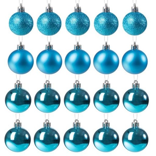 TURKUSOWE ZESTAW BOMBEK CHOINKOWYCH Z TWORZYWA SZTUCZNEGO