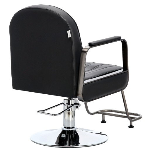 Fotel charakteryzuje się eleganckim i ergonomicznym designem, który pozwala na wygodną pracę fryzjera oraz relaks klientów.