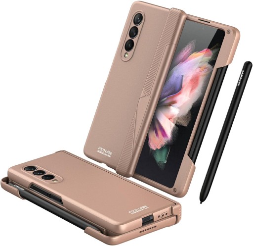 Kolor Różowe złoto Obudowa Uniwersalne etui Zgodne modele telefonów Samsung Galaxy Z Fold3 Materiał Poliwęglan Skóra Wzór Jednolity Funkcja specjalna Uchwyt na długopis, Uchwyt na telefon, folia ochronna, rysik dotykowy Dołączone części składowe obudowa na telefon Zgodne urządzenia Samsung Galaxy Z Fold 3 5G, Samsung Galaxy Z Fold 3 Rozmiar ekranu 7,6 Cale