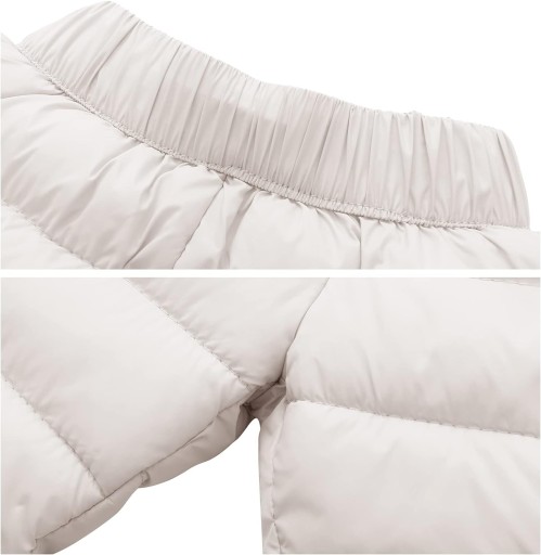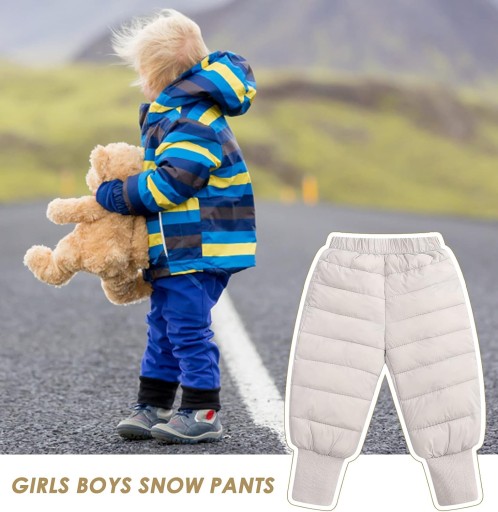 Zewnętrzna warstwa wykonana jest z odpornej na działanie wody i zabrudzenia tkaniny poliestrowej, strona wewnętrzna z wysokiej jakości wypełnieniem z bawełny puchowej. Spodnie puchowe dla dzieci są wiatroszczelne i ciepłe, miękkie i wygodne oraz idealnie dopasowują się do zimnej zimy w pełni do ciała.