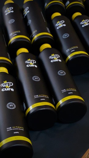 Płyn nie tylko ułatwia pielęgnacje butów, ale też pomaga zmniejszyć nasz wpływ na środowisko. W 98% naturalna formuła została specjalnie zaprojektowana, aby usuwać brud i plamy, utrzymując świeżość . - Butelka aluminiowa w 100% nadająca się do recyklingu - 250 ml roztworu Crep Protect Cure" - Zawiera 98% naturalnego roztworu, który jest odporny na brud i tłuszcz.