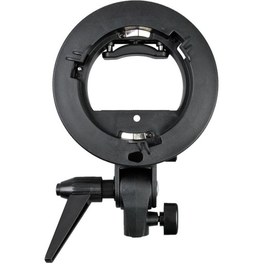 - Uchwyt montażowy typu S, który może posłużyć do montażu większość lamp błyskowych do akcesoriów Bowens