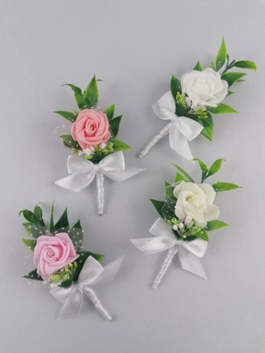 Przypinka jak i bukiecik na rękę występują w kilku wersjach kolorystycznych