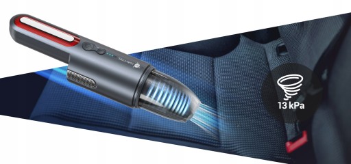 Silnik o mocy ssania do 13 kPa umożliwia usunięcie prawie każdego zabrudzenia i okruchów w samochodzie lub domu.