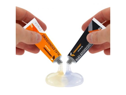 Klej epoksydowy to bardzo mocne spoiwo uznawane za jedno z najbardziej uniwersalnych używanych na rynku. Działa dzięki połączeniu dwóch składników – żywicy z utwardzaczem, zapakowanych w osobne tubki. Składniki uaktywniają się przez reakcję chemiczną, w której skutek powstaje ciepło.