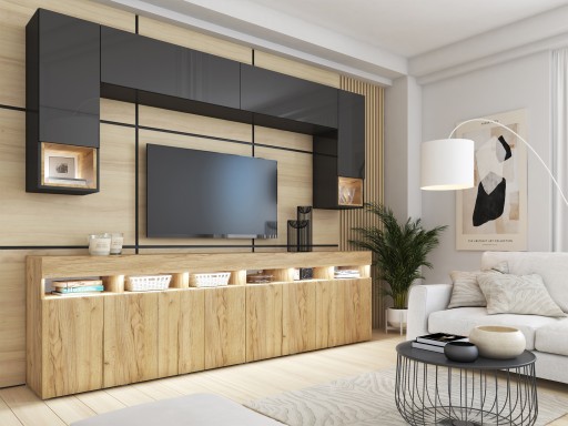 Kolekcja mebli PREMIUM to uniwersalne rozwiązanie do nowoczesnego salonu, pokoju młodzieżowego, a także sypialni. Meble systemowe dostępne w modnych kolorach możesz zestawić z gotowymi meblościankami, które znajdziesz w Naszej ofercie, tak aby jak najlepiej wpasowały się do urządzanego wnętrza. Komoda posłuży również jako szafka pod telewizor.