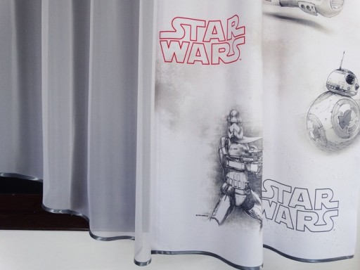 ZASŁONA uszyta z tkaniny jednostronnie drukowanej STAR WARS, na taśmie SMOK 5cm, dół obszyty lamówką