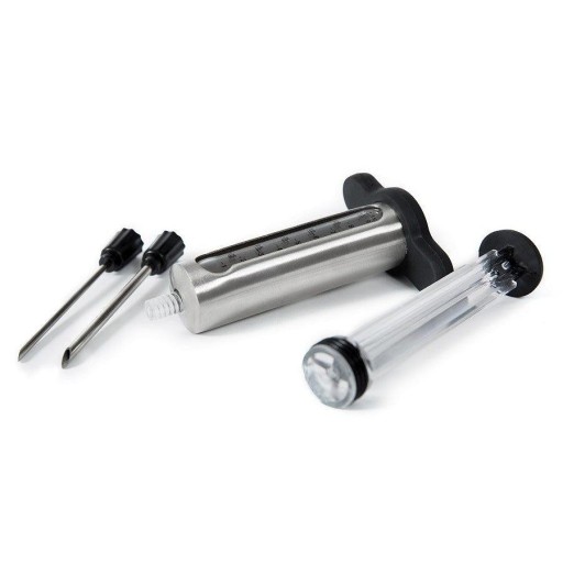 Specjalną strzykawką nasycamy przygotowaną wcześniej cieczą aromatyzującą gotowe na grilla mięsa czy drób. Znajdujące się na wyposażeniu dwie igły różnych rozmiarów pozwolą na dotarcie do każdego miejsca marynowanej potrawy, a podziałka na strzykawce określi ilość wstrzykiwanej cieczy z przyprawami.