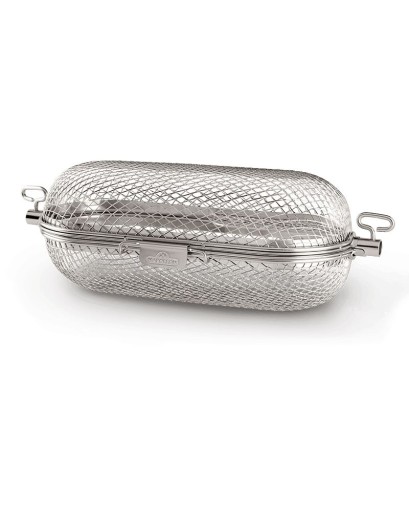 Uniwersalny kosz do zamontowania na rożnie obrotowym w grillach gazowych. Dzięki niemu możemy grillować drobniejsze kawałki mięs, ale także warzywa i np.frytki. Na obrotowym rożnie przygotujemy je dokładniej i z każdej strony będą równomiernie opieczone. Kosz jest zdrową alternatywą dla smażenia w głębokim tłuszczu. Pasuje do kwadratowych i sześciokątnych prętów rożna.