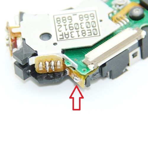 Laser posiada zabezpieczenie, które należy rozlutować po zamontowaniu (zaznaczone czerwoną strzałką).