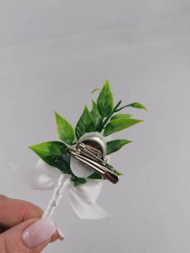 Kotylion mocowany jest na metalowej zapince posiadającej klips i agrafkę