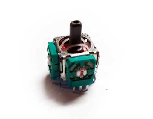 Jak wspomniałem powyżej, analog to 2 potencjometry (kolorowy element z 3 nóżkami, można go odłączyć od obudowy) o rezystancji całkowitej 10kOhm i tolerancji 20%. Oznacza to, że w praktyce mają 9-11kOhm. Oba potencjometry działają jako dzielniki napięciowe. Jeśli po wymianie występuje odchylenie oznacza to, że został zamontowany analog o innych parametrach. Idealnym rozwiązaniem byłoby ponowne skalibrowanie pada, tak jak kalibruje się nowe analogi w JoyCon'ach Nintendo Switch. W związku z tym najprostszym rozwiązaniem jest lutowanie potencjometrów (tych z 3 nóżkami) do skutku, albo zmierzenie starego potencjometru i dobór możliwie jak najbardziej zbliżonego. Wszystkie analogi wysyłamy losowo, nie mierzymy potencjometrów przed wysyłką!
