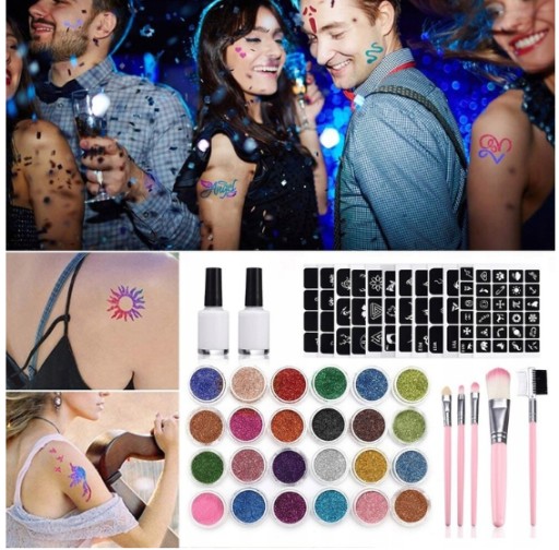 DUŻY ZESTAW DO ROBIENIA TATUAŻY TATUAŻE BROKATOWE