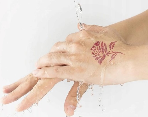 ✔️Gdy klej podeschnie nakładaj kolorowe brokat a pędzelkiem usuń nadmiar brokatu. Tatuaż jest już Gotowy !!!