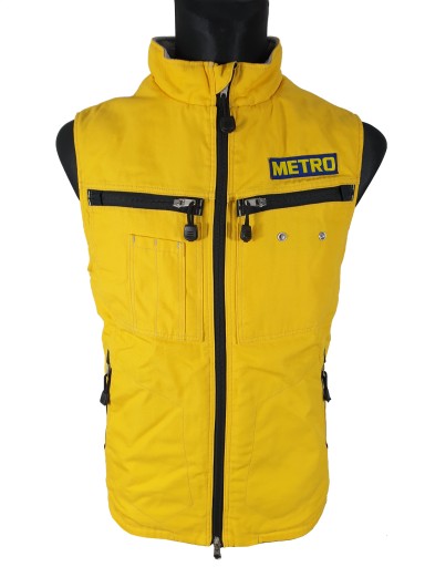 Kamizelka była używana ale jest w dobrym stanie, posiada niewielkie ślady użytkowania np. plamki które nie zeszły w trakcie czyszczenia, inne naszywki imienne, różne logo firm. Wykonana jest z bardzo dobrych materiałów. Posiada wiele kieszeni. Pochodzi z niemieckich zakładów.