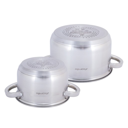 Komplet garnków wykonany z jakościowej stali nierdzewnej 18/10, posiada 5-warstwowe indukcyjne dno, które umożliwia szybkie i równomierne nagrzanie, co pozwala na proste przygotowania ulubionych potraw. Wewnątrz garnków znajduje się skala pomiarowa, która pomoże o dodanie odpowiedniej ilości składników płynnych. Nowoczesny i elegancki komplet garnków będzie częścią dekoracji wnętrza kuchni.