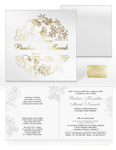 Istnieje możliwość złocenia także środka zaproszenia, lub zmiany koloru treści jednak są to usługi dodatkowo płatne.
