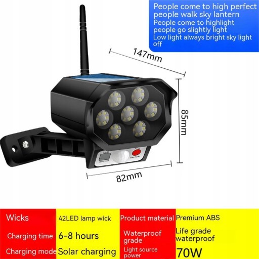 42led symulacja światło na czujnik ruchu bezpieczeństwa słonecznego na zewnątrz sztuczna kamera wiejskiego ogrodu na podwórku kinkiet wodoodporna lampa Ip65