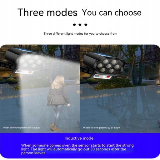 2. 3 rodzaje tryby oświetlenia + zdalnego sterowania: 3 różne tryby zdalnego sterowania-tryb 1: automatycznie włącza się po wykryciu ruchu i wyłącza po około 30 sekundach oświetlenia. Tryb drugi: zawsze włączony w ciemnych warunkach, rozjaśni się po wykryciu obiektu. Tryb 3: zawsze z jasne światła w ciemnych warunkach.