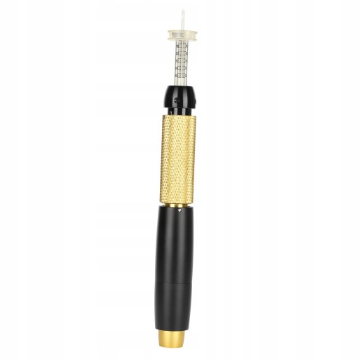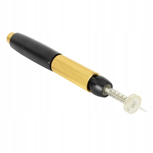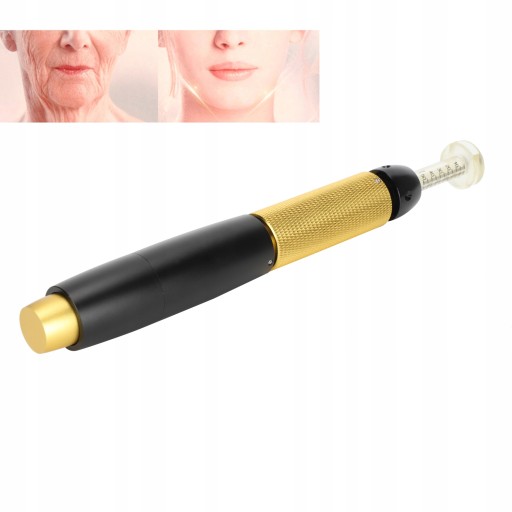 Specyfikacja: Stan: 100% nowy Typ artykułu: wstrzykiwacz hialuronowy Materiał: stal nierdzewna, aluminium Kolor: czarny złoty Zasada techniczna: Bezigłowa, przezskórna technologia dyfuzji jest stosowana do generowania wysokiego ciśnienia przez urządzenie ciśnieniowe, a ciecz jest wypychana z mikrootworu w przedniej górnej części, tworząc bardzo drobną kolumnę cieczy o grubości 0,17 mm, która penetruje skórę natychmiast do podskórnej, łatwo zdając sobie sprawę z efektu przeciwstarzeniowego. Cechy: Bezigłowe, bezpieczne, bezbolesne i wydajne Dotyczy: salonu i użytku domowego