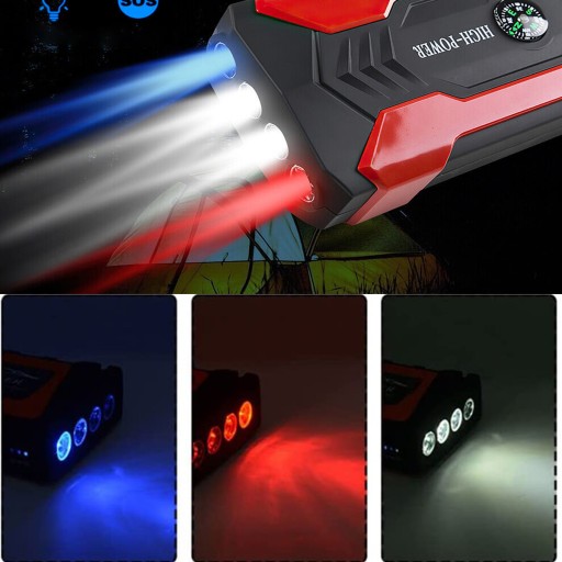 - -Dzięki pojemności 28000 mAh i maksymalnemu prądowi szczytowemu 800 A, rozrusznik samochodowy może bezpiecznie uruchomić samochód, SUV, ciężarówkę lub furgonetkę do 6,0 l silników benzynowych lub 2,0 l diesla około 30 razy przy pełnym naładowaniu w ciągu kilku sekund.