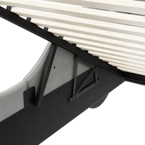 Miejsce do przechowywania: Pod łóżkiem znajduje się duża przestrzeń do przechowywania, która zapewnia wystarczającą ilość miejsca na koce, poduszki lub prześcieradła, a regał z listew można łatwo złożyć za pomocą siłownika podnoszącego.