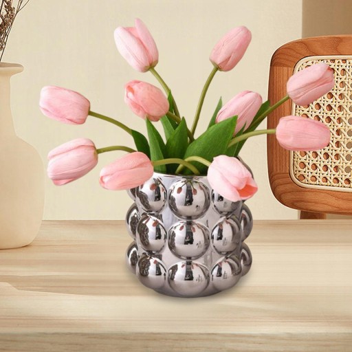 Ceramiczny wazon z bąbelkami obsadka do pióra uchwyt na pędzle do makijażu do biurowego kominka Home Argent 14cm x 15cm