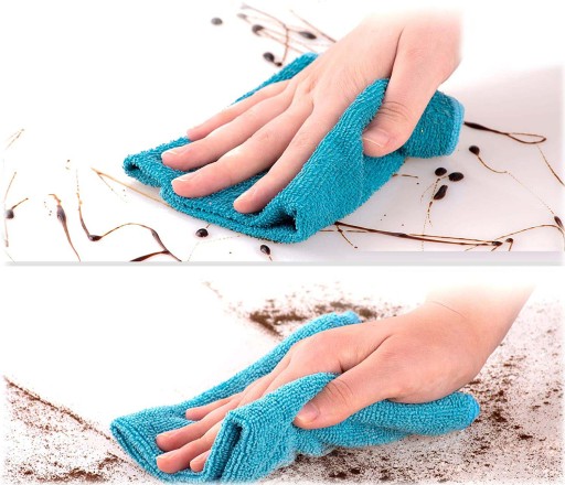 Struktura materiału sprawia, że ściereczki doskonale chłoną wodę i innego rodzaju płyny, dzięki czemu ułatwiają utrzymanie czystości oraz sprzątanie.