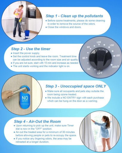 ✅ Łatwy w użyciu - wystarczy włączyć minutnik, maksymalny czas to 180 minut. Po zakończeniu pracy wietrzyć przez 30 minut przed ponownym wejściem do pomieszczenia.