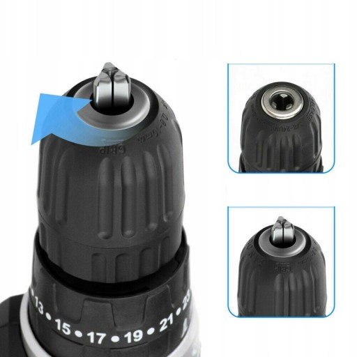 - Uchwyt bezkluczykowy z funkcją automatycznego blokowania: do najszybszej i najłatwiejszej wymiany wierteł.