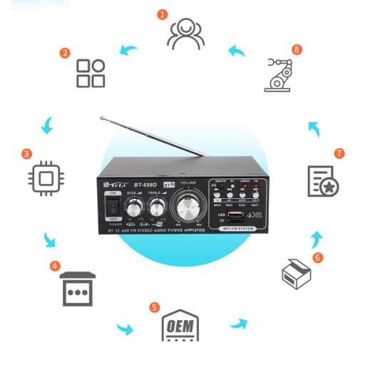 🫧Ten wzmacniacz obsługuje karty TF, dysk U, odtwarzanie w formacie MP3 i obsługuje radio stereo FM.