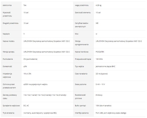 Charakterystyka techniczna oscyloskopu Launch Scope Box O2-2
