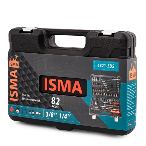 Zestaw kluczy nasadowych w rozmiarach 1/4" i 3/8" składa się łącznie z 82 elementów, wykonanych z wysokiej jakości stali chromowo-wanadowej (Cr-V).