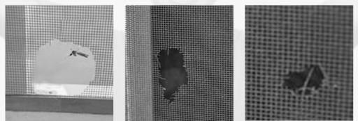 Taśma naprawcza do moskitiery może być używana do naprawy drobnych lub większych uszkodzeń, takich jak rozdarcia, dziury, lub luźne szwy na moskitierze.