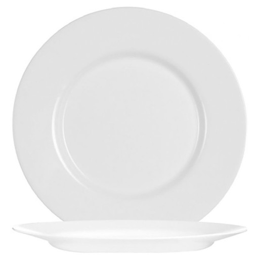 Talerz obiadowy z serii Every Day francuskiej marki Luminarc. Talerz płytki wykonany z białego szkła hartowanego. Świetnie sprawdzi się do serwowania dań głównych. Średnica 26,5 cm. Można bezpieczne stosować w zmywarce i mikrofali.