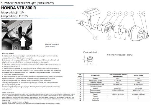 Materiał: konstrukcyjne tworzywo sztuczne, które pochłania energię uderzenia i wyhamowuje ślizgający się motocykl. Elementy wykonane na maszynach CNC (sterowanych numerycznie).