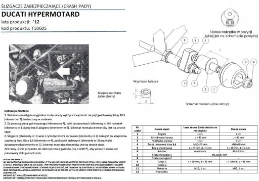 Materiał: konstrukcyjne tworzywo sztuczne, które pochłania energię uderzenia i wyhamowuje ślizgający się motocykl. Elementy wykonane na maszynach CNC (sterowanych numerycznie).