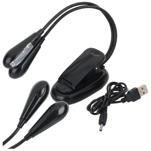 ЛАМПА С ЗАЖИМОМ 4 СВЕТОДИОДА ДЛЯ ЧТЕНИЯ МУЗЫКИ, ДВОЙНОЙ ЗАЖИМ