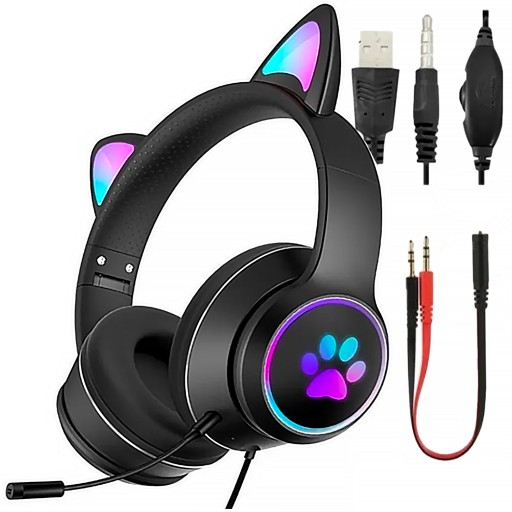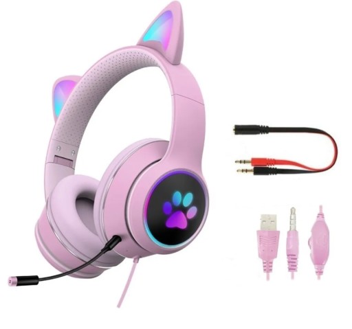 - Wygląd: Słuchawki mają uroczą konstrukcję z dużymi, podświetlanymi uszami kota. Są dostępne w różnych kolorach, dzięki czemu można dopasować je do swojego stylu.