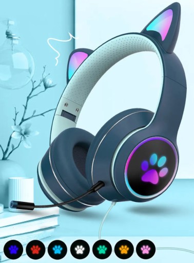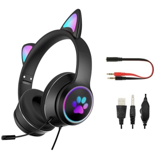 SŁUCHAWKI KOCIE USZY z mikrofon ŚWIECĄCE USZY RGB