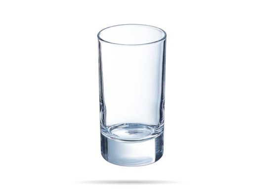 Zestaw małych szklanek Islande Arcoroc. Proste szklanki na grubym dnie. Wysoka przejrzystość szkła, gładko wykończone brzegi i grube dno sprawiają, że jest szklanki są wygodne w użyciu i atrakcyjnie prezentuje swoją zawartość.