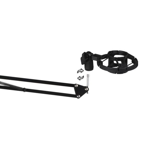 Wyposażony w mikrofon, mocowanie amortyzujące, , stojak nożycowy z regulacją mikrofonu, nasadkę z pianki przeciwwiatrowej, zasilający, kartę dźwiękową
