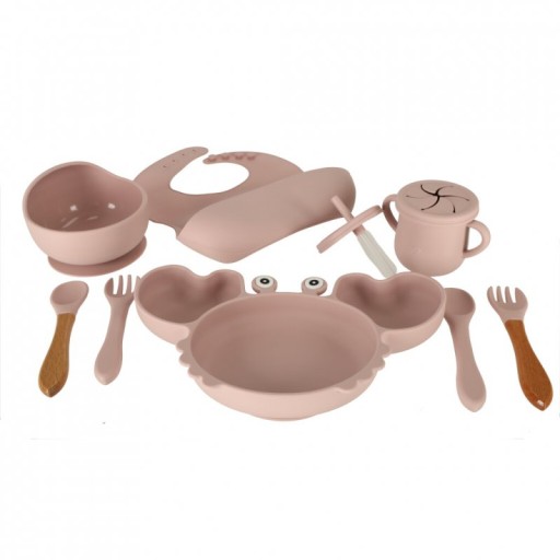 Naczynia silikonowe dla dzieci krab zestaw 9 elementów różowy