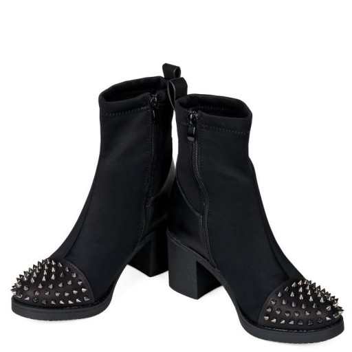 CZARNE BOTKI DAMSKIE NA KLOCKU OCIEPLANE Z KOLCAMI